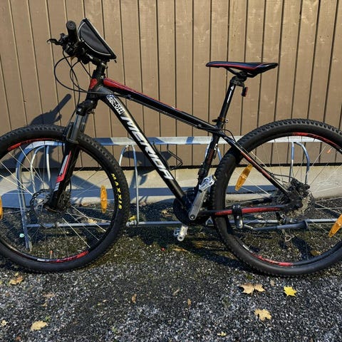 Är utrustad med en solid dämpad gaffel, skivbromsar fram o bak,robust aluminiumram och växlar med en professionell Shimano-krets. Nya däck