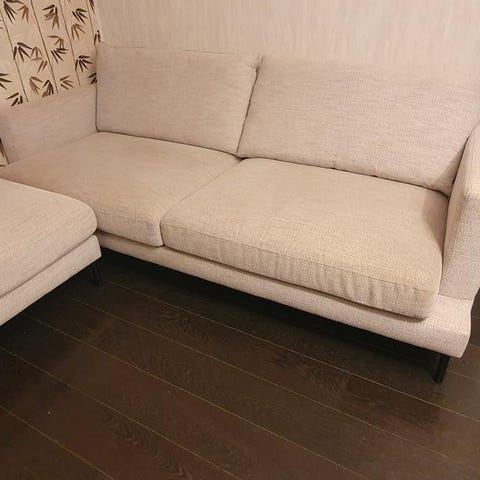 Säljer min fina divansoffa i strukturtyg. Soffan är djup och väldigt skön att sitta på och ligga på, den har varit i ett djurfri hem. Nypris: 21 500:- inklusive 2st nackstöd. Mitt pris 13 500:- Mått enligt neda: L332cm x D154/211cm x H87cm