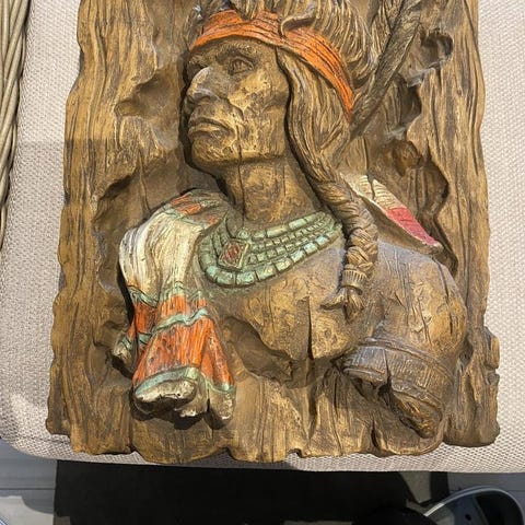 Vacker och detaljerad religiös figurin föreställande troligtvis Helgonet Josef. Med en höjd på 40 cm och en bredd på 20 cm blir denna figurin en fin detalj i hemmet. Figurinen har en halo och en stav, klädd i en rödorange och grön dräkt. Mått: 40 cm x 20 cm Pris: 130 Hör av dig vid intresse!