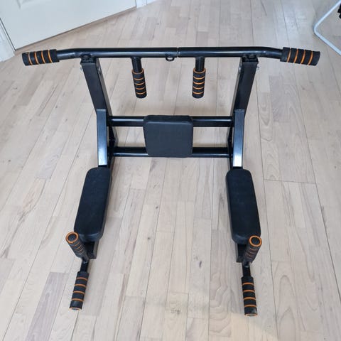 Stationär pull up-stång och dipstation för utomhusbruk, inköpt juni -24, blev aldrig uppsatt så oanvänd och ouppackad.