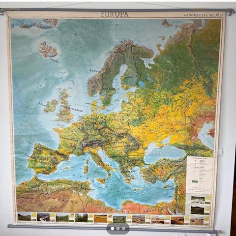 Skolkarta från 1969 i fint skick på aluminiumrulle och aluminiumlist i nederkant. copyright Generalstabens Litografiska Anstalt 1969