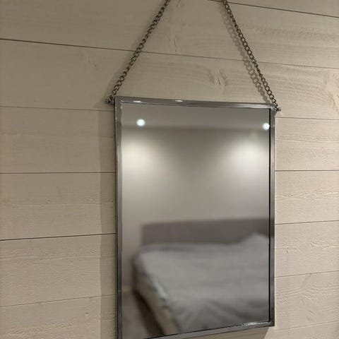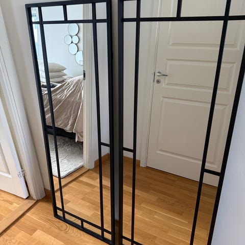 Jondal spegel som inte finns i butik mer, 160*40cm. Mocca liknande material med vita sömmar.