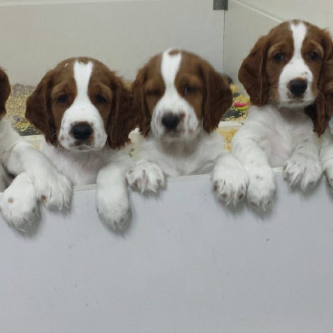 Valparna bor inne med oss i köket och dom andra hundarna.