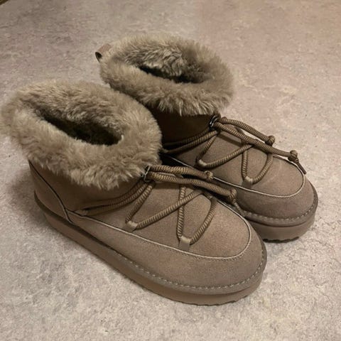 Helt nya beige-aprikosa vinterkängor säljes pga fel storlek. De är små i storleken, som strl 39. Innermått är 24,4 cm.