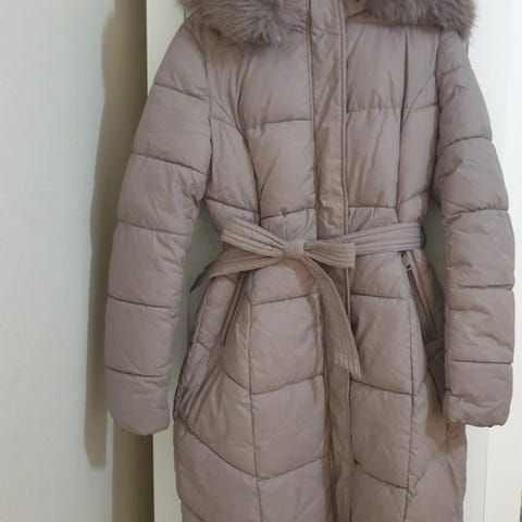 Supersnygg beige piléfodrad jacka med rejäl dragkedja och möjlighet att spänna kragen högt runt halsen.