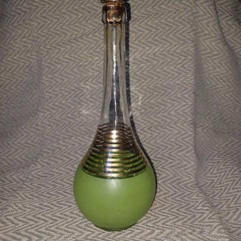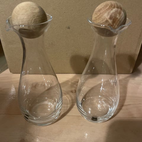 Vintage set glasflaskor med ställning