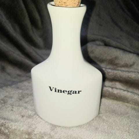 Retro set för Dressing/olja/vinäger med ställning och trähandtag 1960 talet.