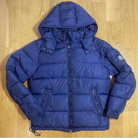 Moncler-jacka (vanligt sökt även som Monclear / Monclere / Monclèr) i mörkblå nylon, herr storlek 5 – vilket motsvarar ungefär XL