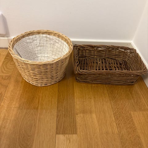 Virkad korg i fint skick. Perfekt för filtar eller annat.