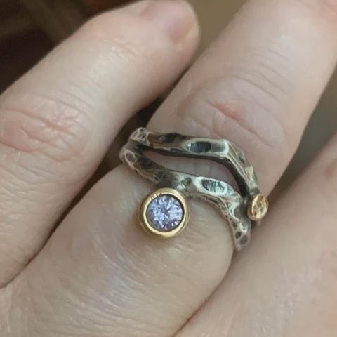 925 Sterling silver plated with copper base with untreated, real Amethysts & Citrines. This ring gives you the feeling that you are bathing in the most beautiful summer field, filled with millions of flowers. Letting you go all of your worries, pure calmness 🥰🌼 With beautiful handmade carvings around the entire ring, flowers and leaves.