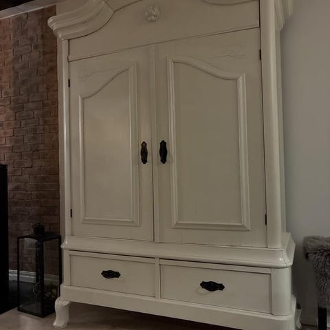 Antik vit skänk. Höjd: ca 148, bredd: ca 90.