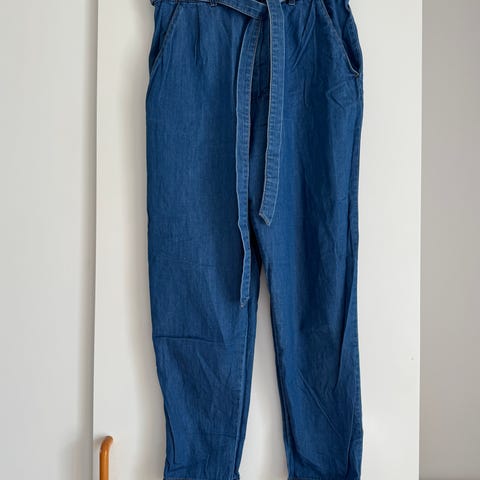 Somrig byxa i blått, strl 44, passar 40/42 med, band i midjan. Långbyxa i 50% Lin & 50% Bomull 🌻