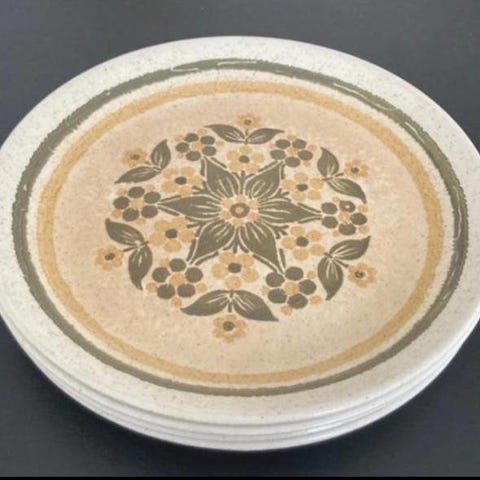 4st förrättstallrikar / assietter med blue plaid / blå rutigt mönster från kvalitativa Churchill, Staffordshire, England. 1970-tal