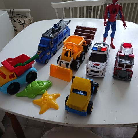 Säljer pull-back leksaksbilar enligt bilder. Följer med ramper och tunnor och olika däck.