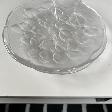 En blå skål i glas! Perfekt att servera frukt, godis eller annat gott! H 8,2 cm, diameter i botten 7 cm och 28,5 cm bredast i toppen!