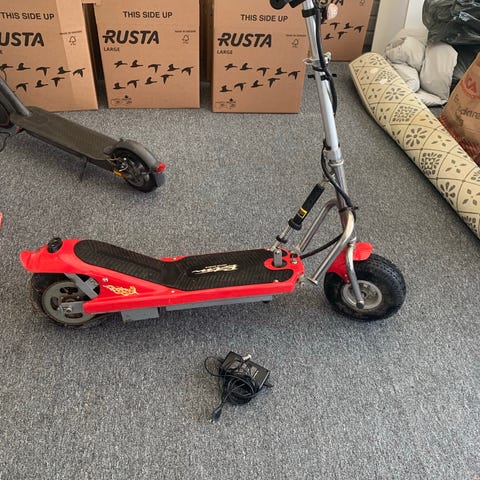 Höj/sänkbar sadel som också kan tas bort, styre med handbroms, luftdäck för bättre stötdämpning, alltid förvarad inomhus. Styret går att fälla ned. Inga märken eller dylikt, körd med försiktighet så mycket bra skick trots att den inte startar.