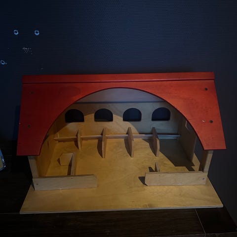Stall i trä, för stort och tungt för att skickas.