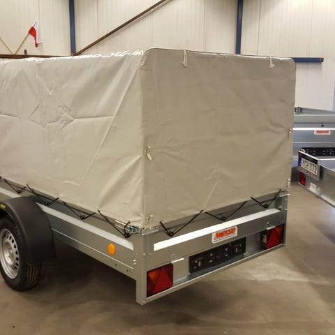 Utrustad med 40 cm förhöjnings lämmar och presenning.