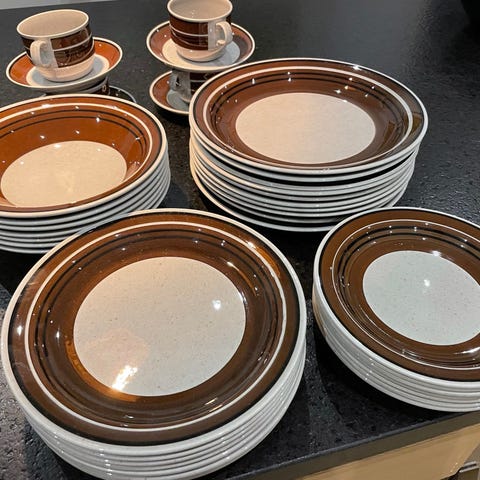 Keramik Rörstrands Tuna, 9 st assietter, 8 övriga delar, ugnssäkert