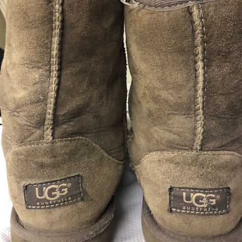Dottern har växt ur sina UGGs. Välanvända men hela och tvättar du och borstar av dem så kan de få nytt liv. De är ju ett par varma goa skor och min dotter har älskat dem. De har hållt mycket bra trots användning en hel säsong.