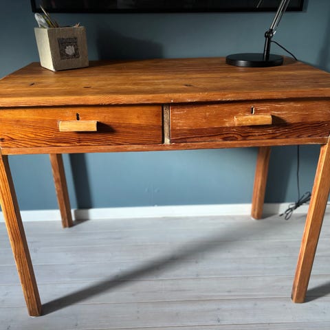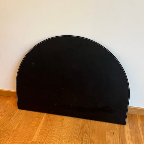 Jag säljer mitt skrivbordsunderlägg. Det är ett hårt underlag som är täckt av konstläder.