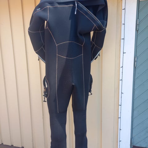 Lätt och smidig för resor. Bra skick på halstätning (latex). Använd ca 30 dyk tills jag insåg att torrdykning inte är för mig.