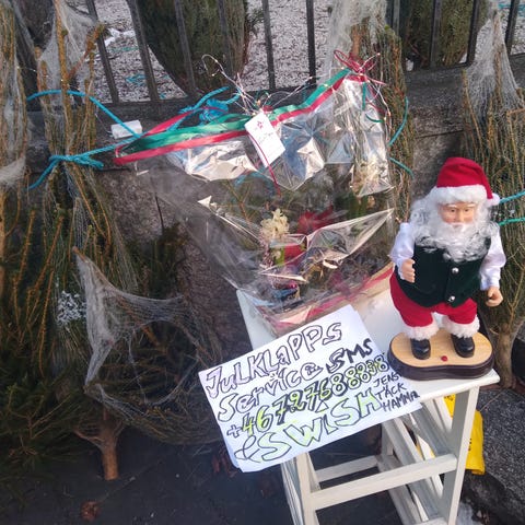 Handgjord smidesjulgran för väggmontage säljes.