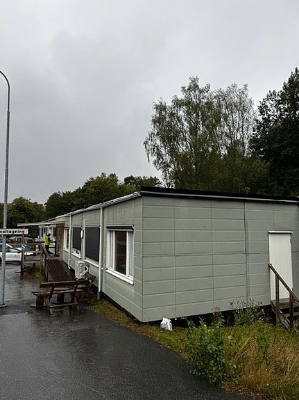 En stor, fin byggnad bestående av 12st volymelement om 12.3 x 3.6(3.72m) som relativt enkelt byggs samman igen på ny plats. Idag stora, fina ytor, flera grupprum, kontor, entréer, kök, 10st WC/RWC, dusch mm mm. Se bild för ritning.