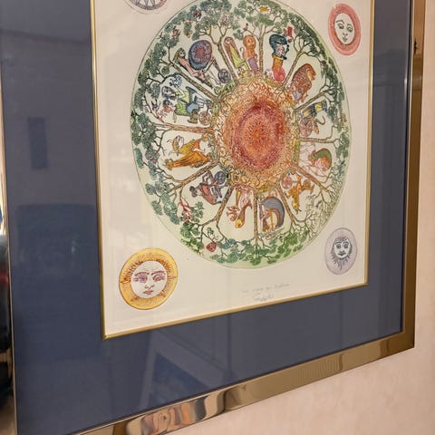 Skapade av Ylva Molitor-Gärdsell. Reflexfritt glass. Ram storlek 52.5 x 40 cm.
