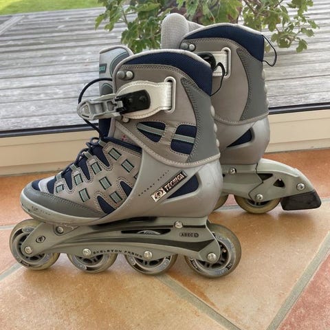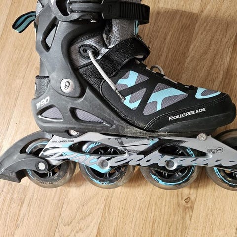 Inlines Rollerblades strl 39,5. ABEC 3 ’biodynamic x-tra vented’ med ’women’s fit’. Tillhörande stavar 145 cm. Ena staven saknar dock pigg. Paketpris 500 sek. Kan även säljas separat.