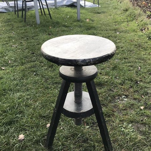 Svensk design. Runda med fotstöd. Stabila. Massiv furu. Svetsade. Svart pulverlack. Mått: H800 B360mm Tjocklek 80mm