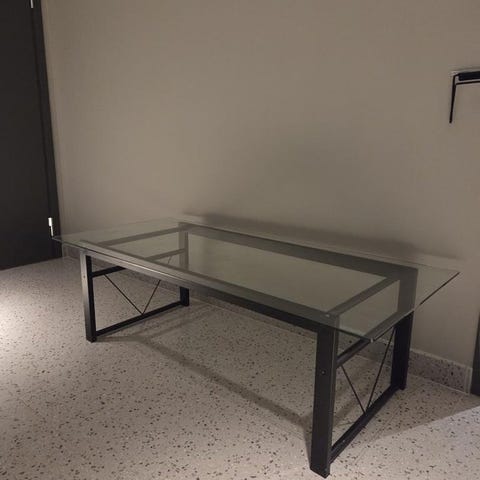 Glass low table with black aluminum base.