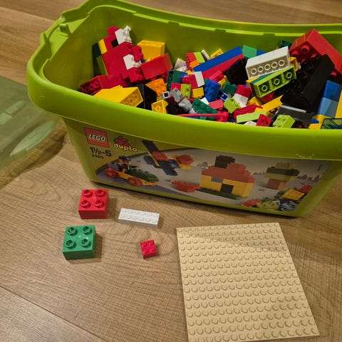 Lite mindre än 2 kilo Lego blandade bitar med en hel bil