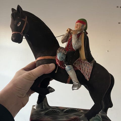 En dekorativ sjöjungfru figurin. Den föreställer en sjöjungfru som sitter på ett snäckskal och spelar ett instrument. Mycket vacker, hämtas i norsborg botkyrka eller fraktas så fort så möjligt.