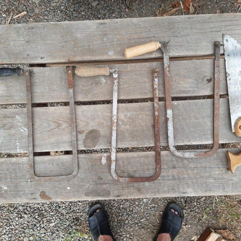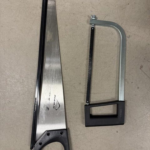 Medföljer ett paket med diverse sågblad i varierande skick, som fås med på köpet.