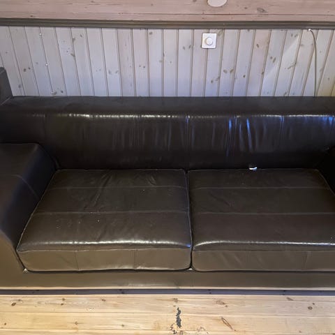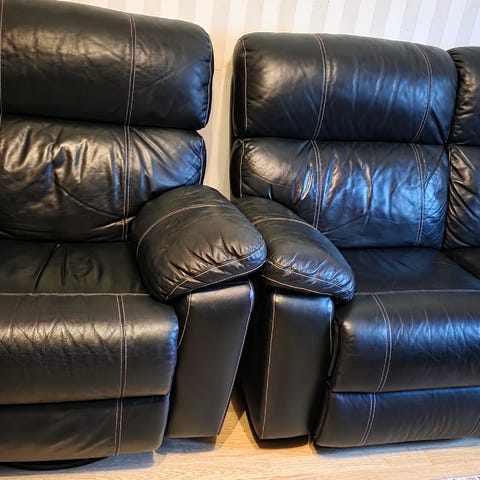 Säljer en brun recliner skinnsoffa i mycket fin skick.