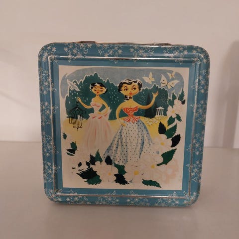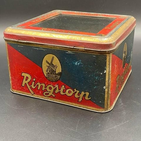Fint patinerad vintage kakburk säljes. Diameter 23 cm, höjd 10 cm.