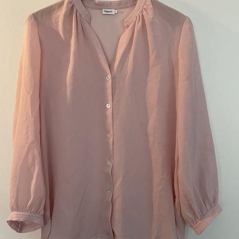 Snygg svart blus från Filippa K med v-ringning och paisleymönster. Smock under bysten på mittenpartiet. Något stretching i materialet. Bröstvidd 43 cm. Längd från nacke och ner till slutet 62 cm. Ärmlängd från axel 58 cm. Kan hämtas på Fridhemsgatan vid Fridhemsplan.