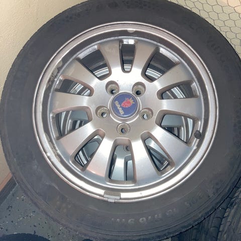 Märke Strial och har suttit på en Saab 9-5, (bilen skrotad) men passar säkert till flera märken. däckens mönsterdjup 5-7 mm och har bra med dubbar. Fälgarna, Enzo är dock något fula.