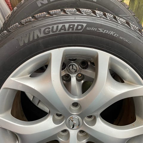 Fyra Mazda 18” originalfälgar med Hakkapelita 215/55 R18, odubbade vinterdäck! Använda tre vintrar i stadskörning.