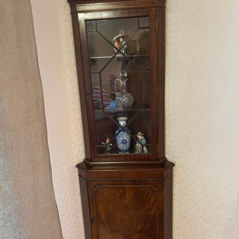 Fint hörnskåp, mörkrets.