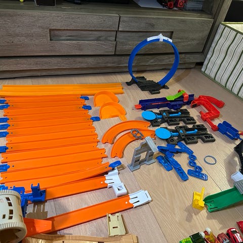 Transportbil med 6 våningar för Hot Wheels-bilar. Ca 45 cm lång. Fint skick. Bilarna på bilden medföljer inte.