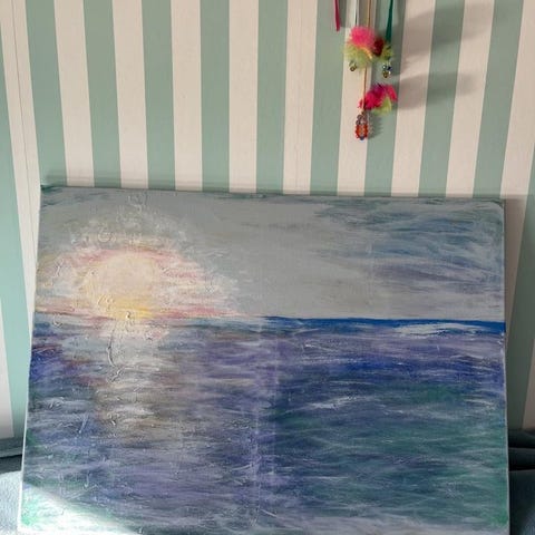 Tavlan är ungefär 108 x 75 cm ish. Tavla är större än i bilden. Fler bilder kan ger på begäran då målningen sitter nere i min källare. Tavlan är annars i bra skick. Och tavlan hämtas helst. Om du har frågor fråga jätte gärna! 😊