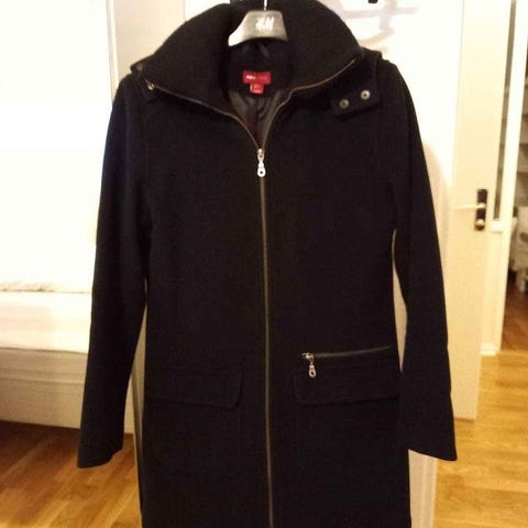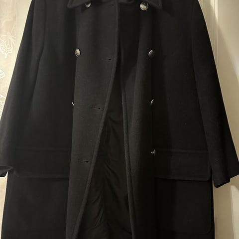 Elegant svartvit kappa i ullblandning – perfekt skick!" med dragkedja framtill. Strl.36
