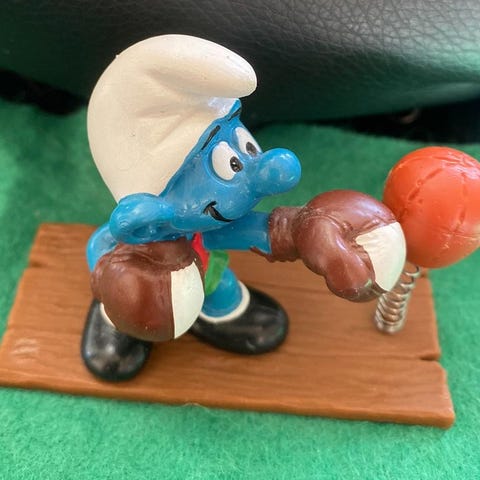 Avyttrar nu min smurf samling och här är ”smurf med grön papegoja” från 1979.