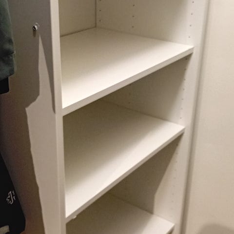 Oanvänd överhylla till ikeas långkörare Billy. Den har fått sig en törn, se bild, men det är på den delen som är mot väggen så borde inte synas i monterat skick.