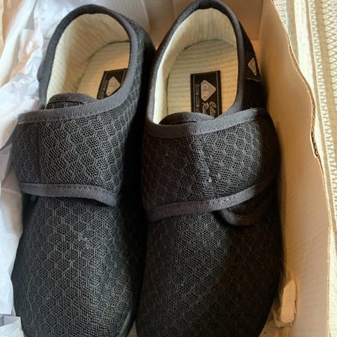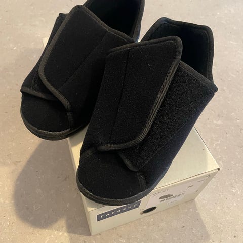 Mycket fina komfort/ortopedtofflor/diabetsvänliga med kardborrband av märket SHOCK Made in France.