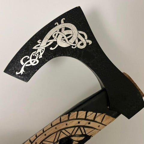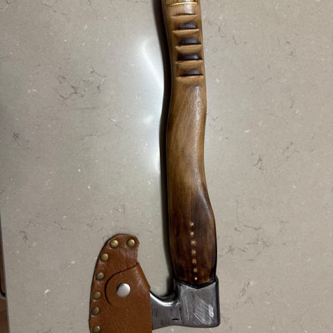 Handsmidd yxa med läderöverdrag