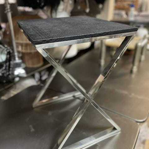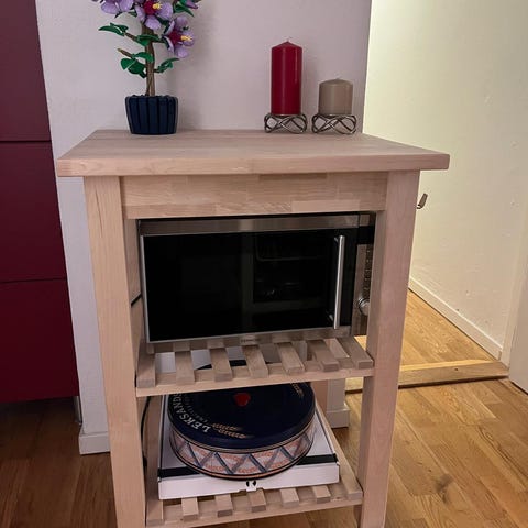 60x40 cm tabletop, max height 80 cm. Min height 63 cm. Light table with rolling wheels that lock that can withstand a little weight. Can be completely disassembled. Never used, only assembled.