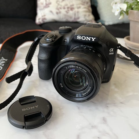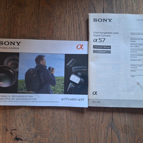 Säljer en SONY 380-systemkamera med tillhörande objektiv. Inkluderar även en Batteriladdare och väska för förvaring.